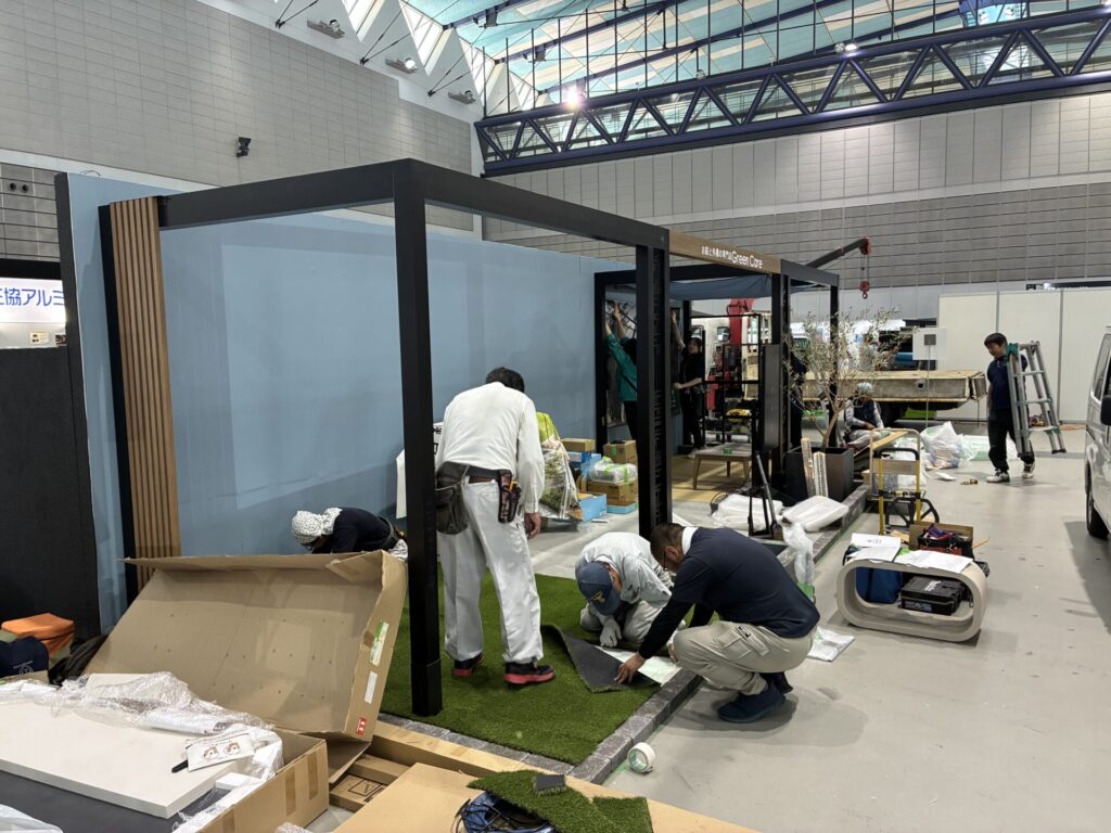 設営の様子です。弊社のブースの設営には沢山の協力業者さんにご協力を頂きました。