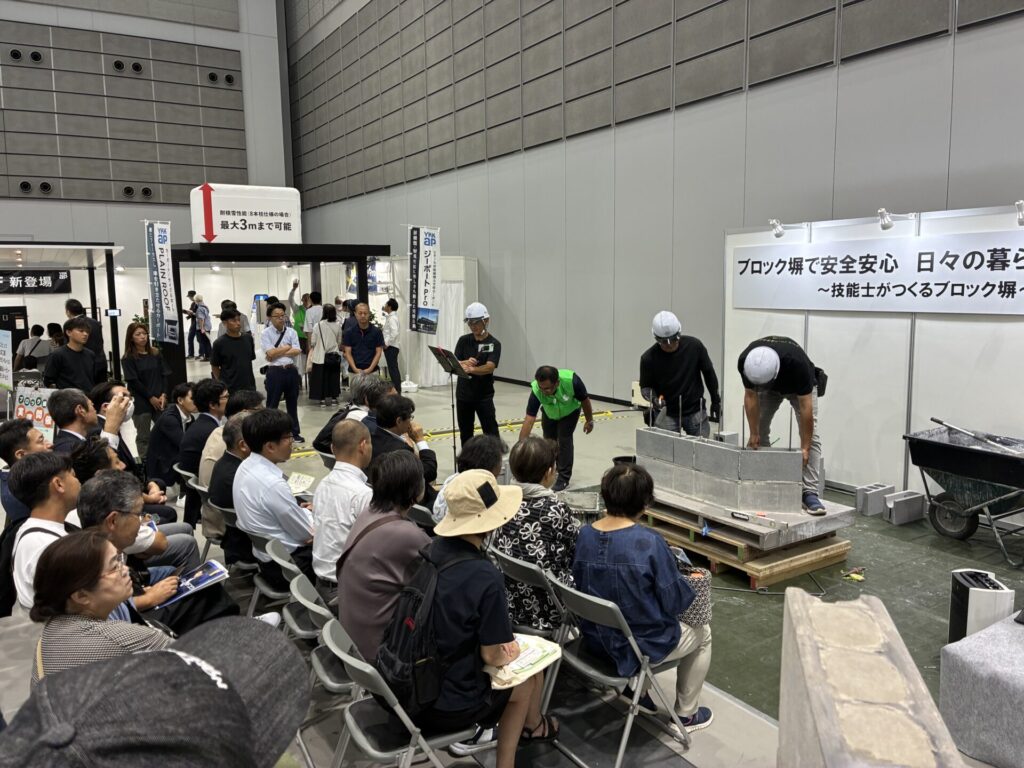 ブロック塀技能士による実演。安心安全なブロック塀をつくるのも私達の仕事です。