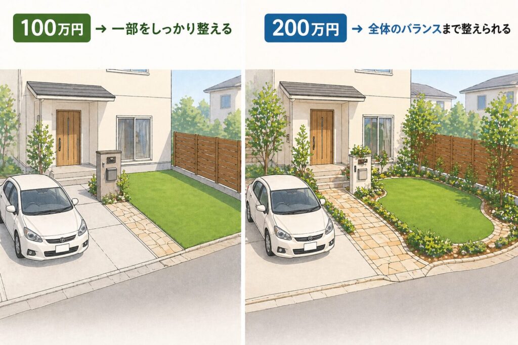 同じ100万円でも“効果を実感できる外構”になります。