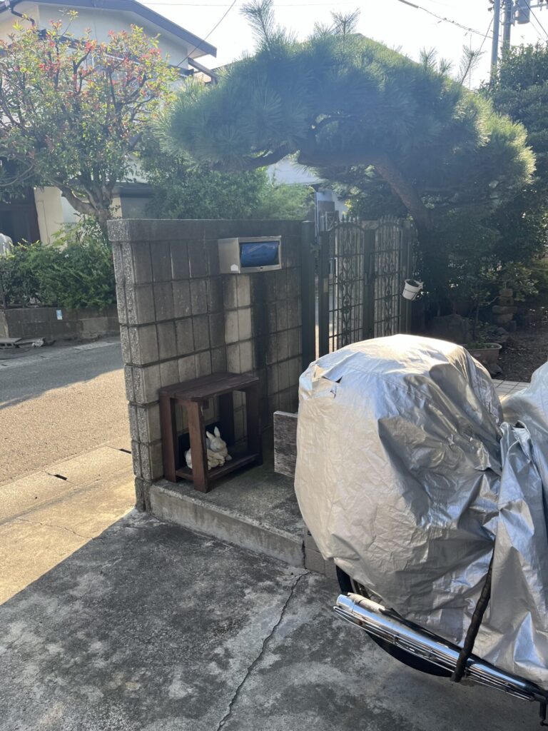 既存の門柱を解体、大きくなり過ぎた植木も撤去。セミクローズの外構からクローズ外構へ。