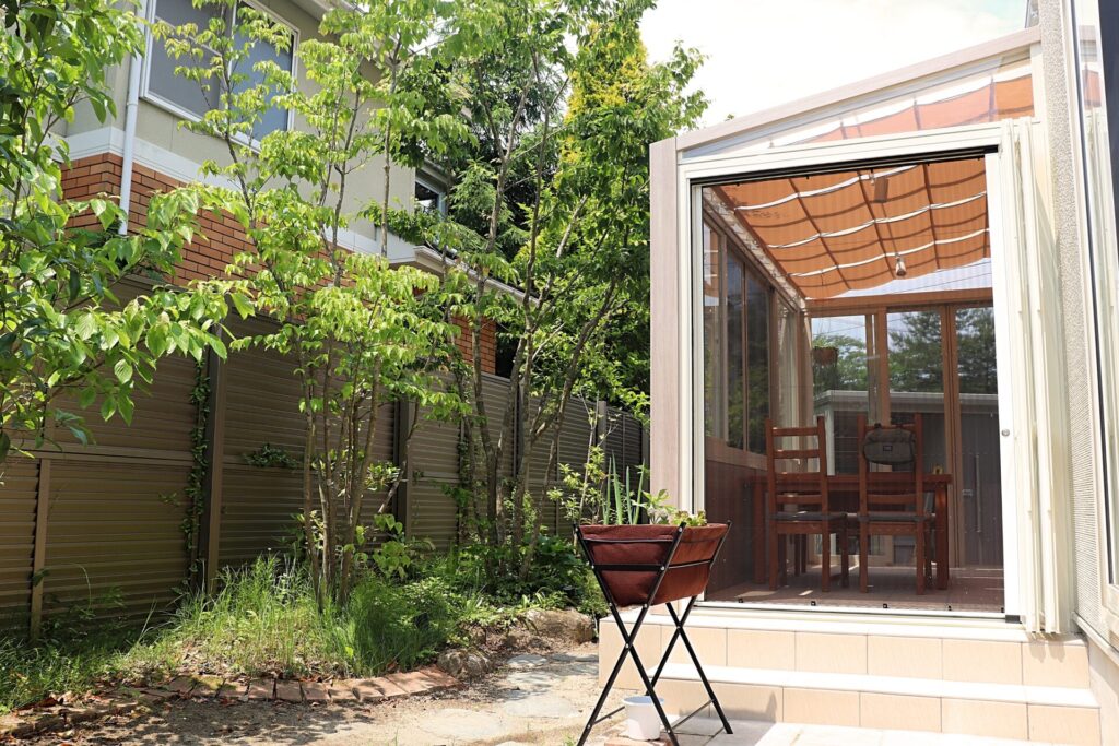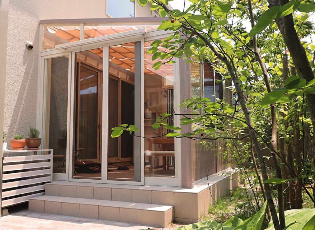 側面の開口部は『テラスサッシ』と『折戸』を選択できます。写真はテラスサッシ。